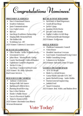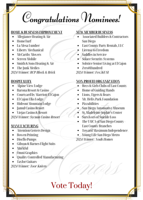We invite you to celebrate 114 years of recognizing and honoring East County's outstanding businesses and community leaders. Enjoy a night with dinner, dancing, opportunity drawing, and more! The San Diego Regional East County Chamber of Commerce will also swear in the new Board of Directors for 2026. Black Tie Encouraged.