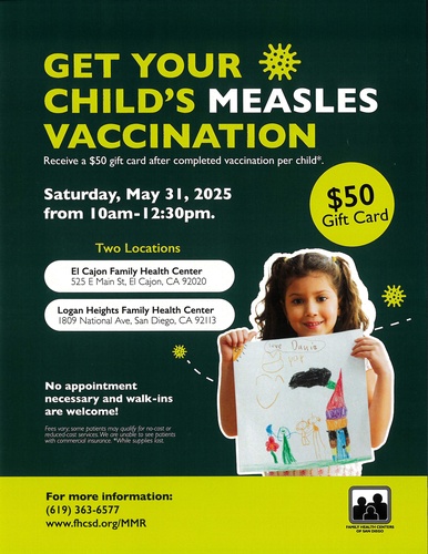 No appointment necessary and walk-ins are welcome! Questions? Call (619) 363-6577.